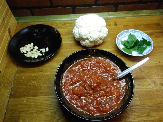 Květá poté zalít rozhňahňanou omáčkou z rajčat v plechovce s ostatními ingrediencemi.